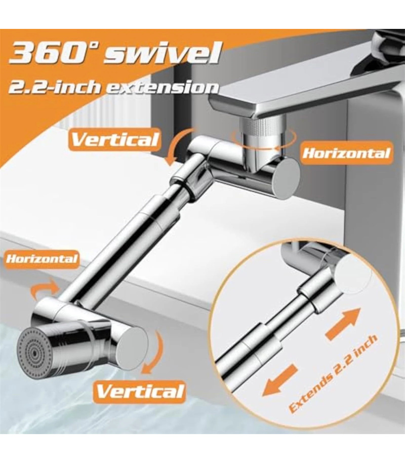 هر سه بخش قابلیت چرخش ۳۶۰ درجه دارند، بنابراین در مجموع، سرشیر میتواند تا ۱۰۸۰ درجه چرخش کامل داشته باشد. به زبان ساده، شما میتوانید جهت خروجی آب را در هر زاویه دلخواه تنظیم کنید و بدون محدودیت از آن استفاده نمایید.