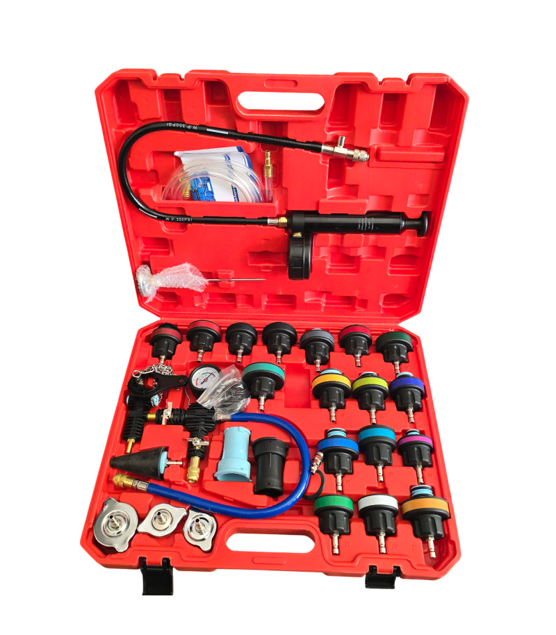تست رادیاتور 28 پارچه یک کیت یا ابزار تست فشار رادیاتور می باشد که برای تشخیص نشتیها و بررسی کارکرد سیستم خنککننده خودرو استفاده میشود.