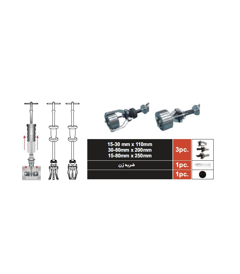 دارای 3 پولی کش با سایزهای 15 تا 30 - 30 تا 80 - 15 تا 80 میلی متر